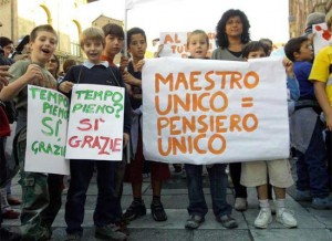 Il 24 settembre il “tempo pieno” compie 40 anni. E’ in quella data che viene emanata la Legge 820/71 con cui si delinea una scuola diversa da quella tradizionale, che prevedeva un insegnante unico per 24 ore settimanali. Quella legge, che definisce un modello educativo eccellente che ancora oggi tutta Europa ci invidia, fu preceduta da un lavoro partecipato e appassionato di tanti educatori, pedagogisti, lungimiranti amministratori locali, genitori, insegnanti e dirigenti scolastici. Tra i papà del tempo pieno ricordiamo Ettore Tarozzi, Bruno Ciari, Fiorenzo Alfieri, Raffaele La Porta, Francesco De Bartolomeis. E’ stato un cammino lungo, iniziato negli anni ’50, in cui la scuola doveva avere anche la funzione di “offrire un pasto caldo”, per passare ai fertili anni ’60, libertari sì, ma che vedevano nella scuola il luogo in cui ci poteva essere il riscatto degli umili; gli anni 70 con l’istituzionalizzazione del tempo pieno statale attraverso la legge; la stabilizzazione degli anni ’80, che non trova però omogenea diffusione sull’intero territorio nazionale, fino all’attentato della Moratti, il cacciavite di Fioroni, il Napalm della Gelmini. Il tempo pieno e’ scelta politica, per la piena attuazione della scuola della costituzione; e’ cultura organizzativa e gestionale, che realizza appieno il vero senso dell’autonomia scolastica e del rapporto fecondo che ci deve essere tra scuola e territorio; e’ cultura pedagogico didattica. E’ la scuola democratica. E’ il “tempo scuola dalla parte dei bambini”, che li fa sentire accolti, che permette il confronto tra culture diverse, che assicura le competenze di base, sotto una formazione solida al pensare, che ne stimola la creatività. E’ la scuola che, grazie alle ore di compresenza degli insegnanti e al rispetto dei tempi di apprendimento di ogni bambino, permette a maestri e maestre di compiere ogni anno un grande miracolo. Il primo giorno di scuola in prima elementare arrivano bambini e bambine molto diversi tra loro: c’è il figlio del professionista, che sa già leggere e scrivere, c’è quello che sa solo disegnare e quello che non parla neppure l’Italiano. Eppure immancabilmente tutti, non uno di meno, a Natale sanno leggere e scrivere. Quei bambini così diversi, ma ugualmente utili l’uno all’altro, sono diventati una classe.